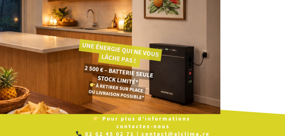 Anticipez aujourd’hui pour disposer d’une alimentation de secours. À La Réunion, les coupures électriques peuvent survenir à tout moment, en particulier pendant la saison cyclonique. Dans un environnement insulaire, anticiper ces interruptions est essentiel pour garantir le confort de votre logement et la continuité de votre activité professionnelle.Avec la batterie de MARSTEK VENUS, vos…
